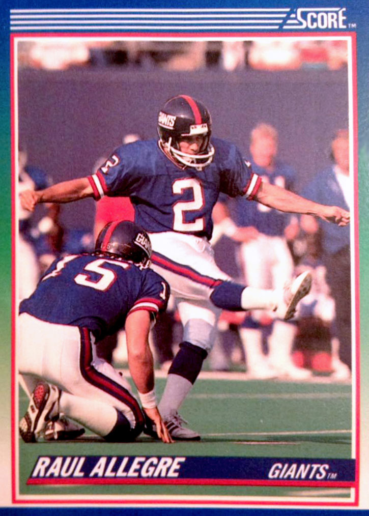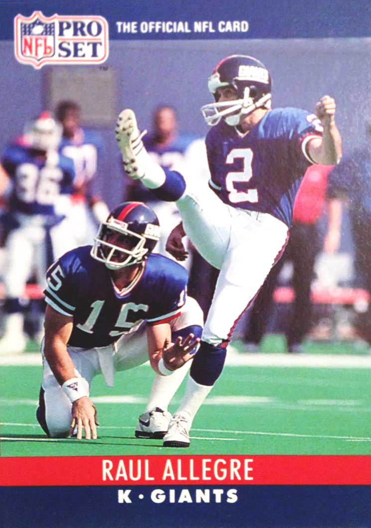 Después de completar su período en el futbol americano universitario en 1982, Raúl debutó con los Potros de Baltimore de la NFL en 1983, llegando a ser el jugador más valioso del equipo ese año, el último de esa gloriosa franquicia. En 1983, fue también nombrado al equipo de estrellas de la NFL por las revistas “Sports Illustrated” y “Pro Football Weekly.” El equipo cambió de sede a la ciudad de Indianápolis en 1984. Raúl Allegre terminó su período con los Potros con el porcentaje de efectividad más alto de su historia. En 1986, Raúl pasó a ser parte de los Gigantes de Nueva York y su participación fue esencial en 6 de las victorias del equipo durante ese año que los viera coronarse como campeones del Super Bowl. En un período de dos juegos consecutivos, Raúl convirtió un total de 9 goles de campo incluyendo los que le dieron la victoria a su equipo al final de cada juego. Raúl permaneció con los Gigantes hasta 1991, siendo también miembro del equipo durante el campeonato en el año 1990. Raúl terminó la temporada ’91 con los Jets de Nueva York convirtiendo los goles de campo que le darían el empate y la victoria a este equipo contra los Delfines de Miami para calificar a la postemporada de la NFL. Raúl se retiró oficialmente de la NFL en 1993.